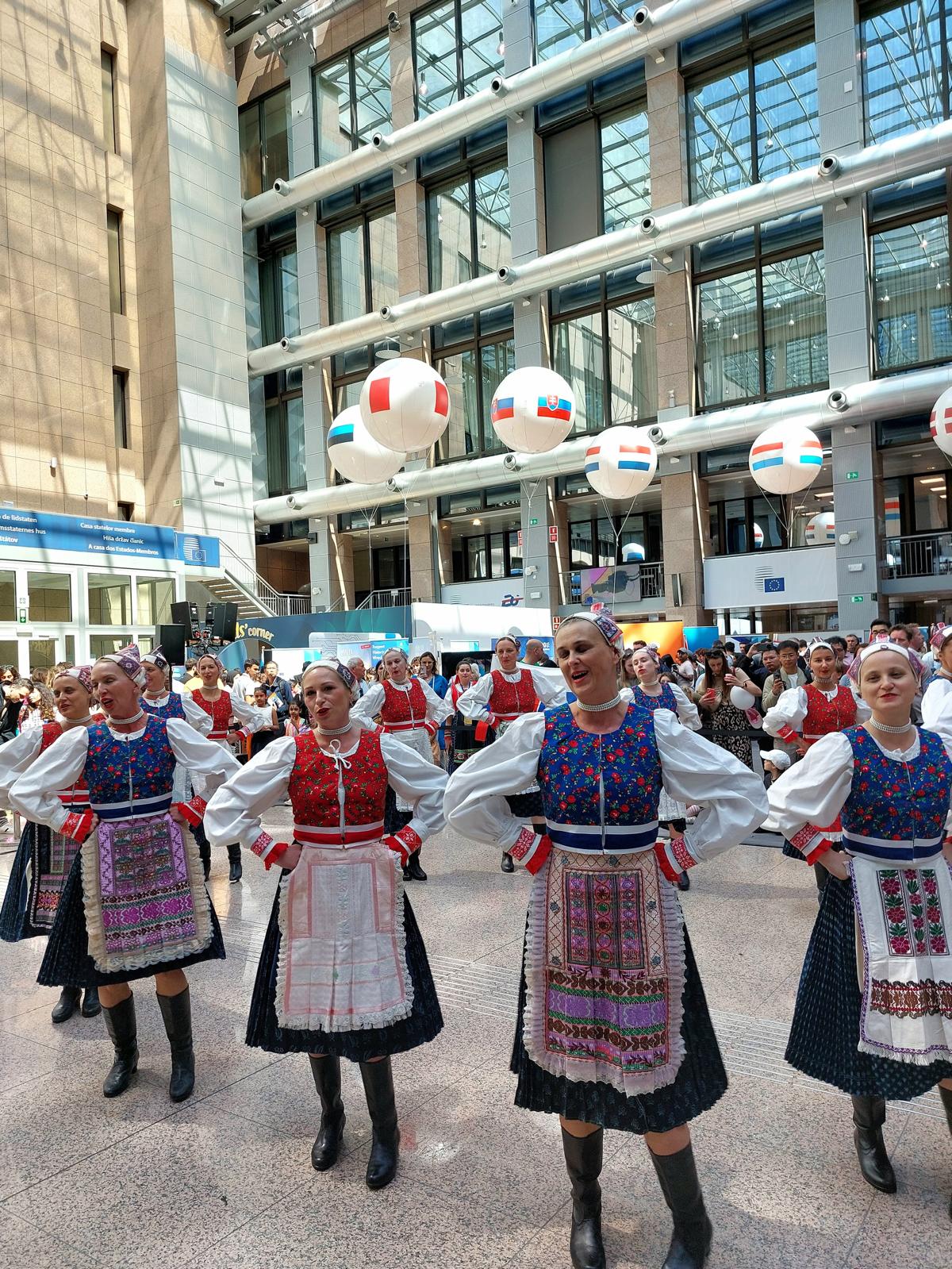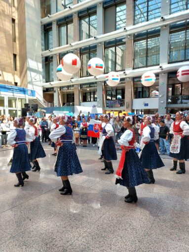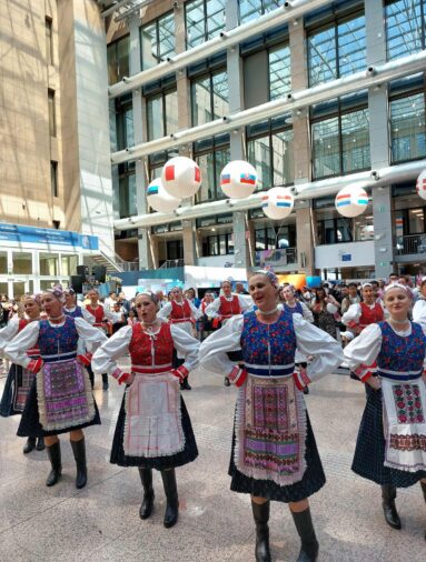 Dni Európy v Bruseli ožili slovenským folklórom aj v roku 2025. V priestoroch budovy Rady EÚ sme návštevníkom predstavili tance z oblasti Telgártu.